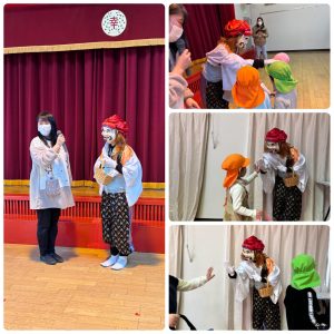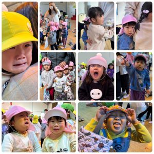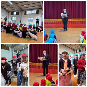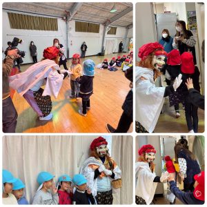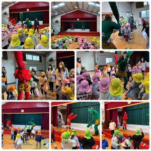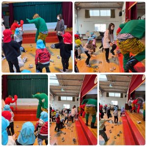 園長先生のお話の後、豆まきの歌をみんなで歌ったその直後・・・