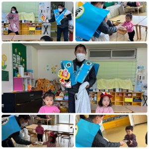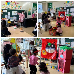 バイキンマンの鬼さんに豆(ボール)をぶつけて鬼退治!