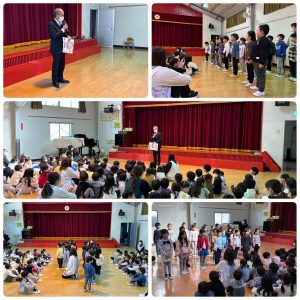 園長先生から説明を受けたあと、年中さん、年少さん、年長さんの順番で歌を歌って、最後はみんなで合唱しました。