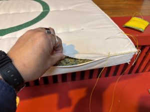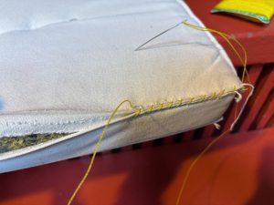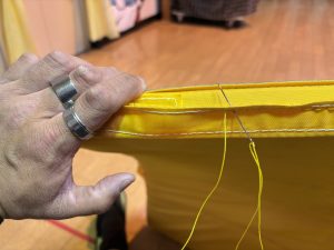 今年度頭、何とか釣り糸(頑丈なナイロン製)で、縫い付けました(笑)。
