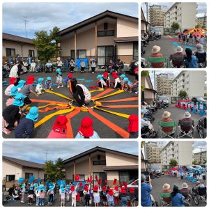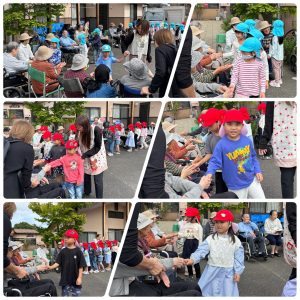 今年度から畑の一角をお貸しくださった施設の皆様へ、年長さんたちが御礼の舞を披露しました。